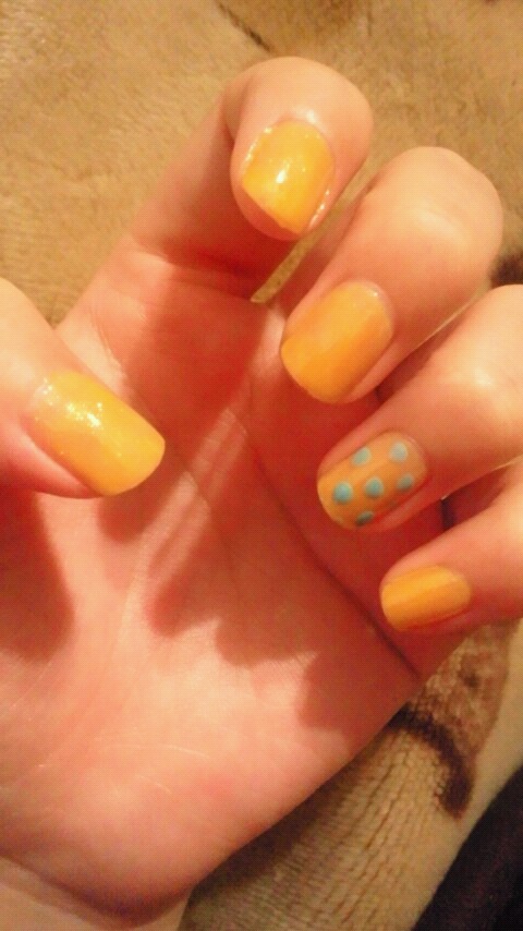 左手の薬指は青ボチだけど右はピンクなのよ